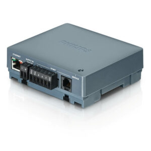 The Philips Dynalite PDEG provides a multipurpose Ethernet connection to a Philips lighting control system. It supports access to the lighting system via a dedicated Philips app as well as providing a web interface delivering access to the inbuilt timeclock and schedule editor functions. It provides bridging functionality between Ethernet backbone and the DyNet fieldbus devices.