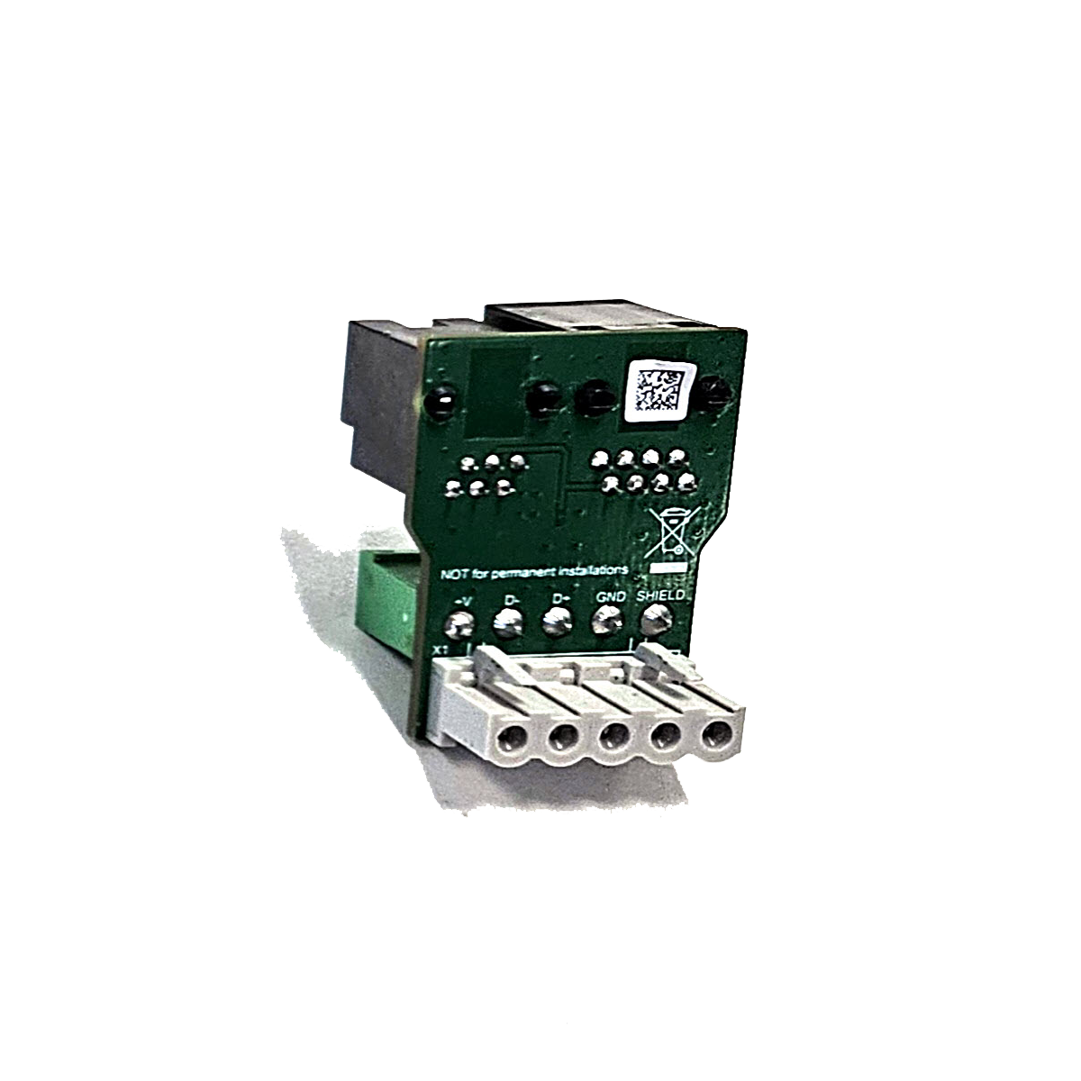 5-way socket and plug with 1 x RJ45 and 1 x RJ12 socket. Inserted between the DACM and the PC Node. It enables RS-485 network continuity whilst providing commissioning access. Supplied with the PD-PCN (USB PC Node). Available at Qty 10.